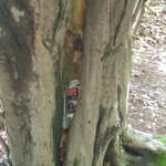 Schowana na rozstaju dróg pomiędzy Wadowicami a Skawiną. Drzewo ze skarbem znajduje się kilkanaście metrów od stolika. Na jednym ze zdjęć widać dokładnie widok od konkretnego drzewa na miejsce biesiadowania.